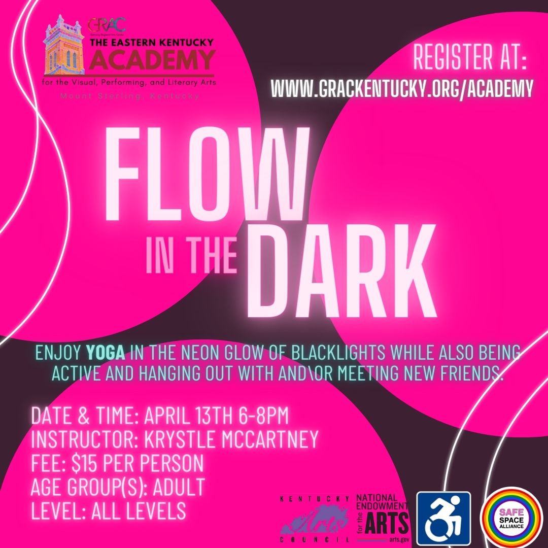 Flow In The Dark offers a new way to enjoy the neon glow of blacklights while also being active and hanging out with and\or meeting new friends. We're turning up the music while amping up the energy, practicing with blacklights. It's not only fun, it'll make for an extra comforting environment for new yogis because no one is going to notice if your pose isn't perfect. Wearing white or neon colors is encouraged, but there is glow-in-the-dark jewelry and body paint on hand for the finishing touches before you get your yoga on. This event is designed for all experience levels. Tickets Include: glow-in-the-dark jewelry, body paint, and yoga practice.