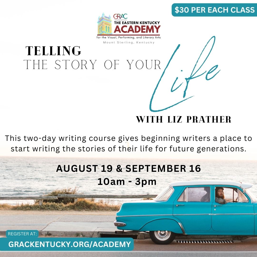 This two-day writing course gives beginning writers a place to start writing the stories of their life for future generations. You will learn the basics of writing your life stories, how to edit your work for clarity, and how to organize stories thematically and chronologically. Participants will also have an opportunity to work with other writers in a workshop community and receive feedback as well as mentoring from their instructor, Liz Prather. Author of three books on writing, Prather is the former Literary Arts teacher at the School for Creative and Performing Arts in Lexington. You must register for the first class to be eligible for the second class.