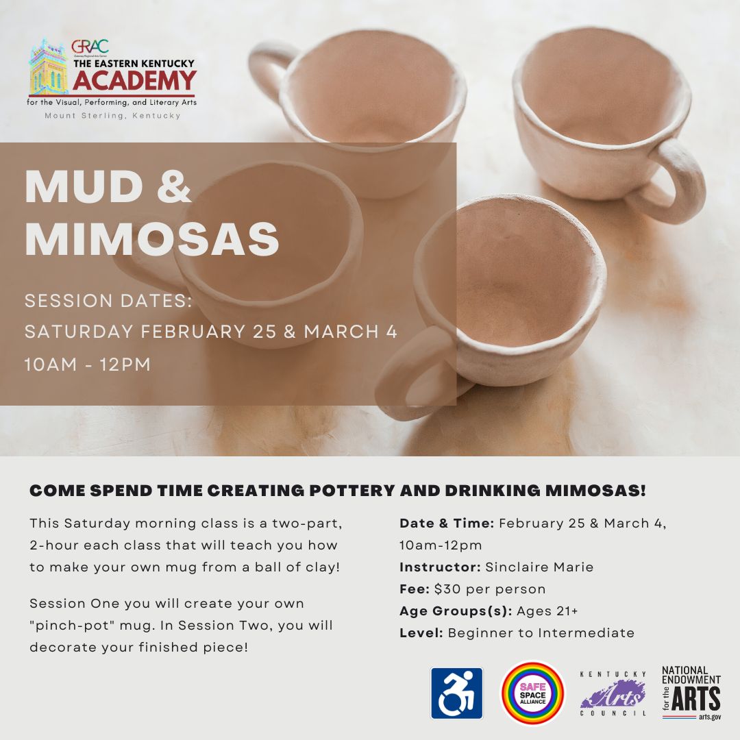This Saturday morning class is a two-part, 2-hour each class that will teach you how to make your own mug from a ball of clay! Session One you will create your own "pinch-pot" mug. In Session Two, you will decorate your finished piece!
