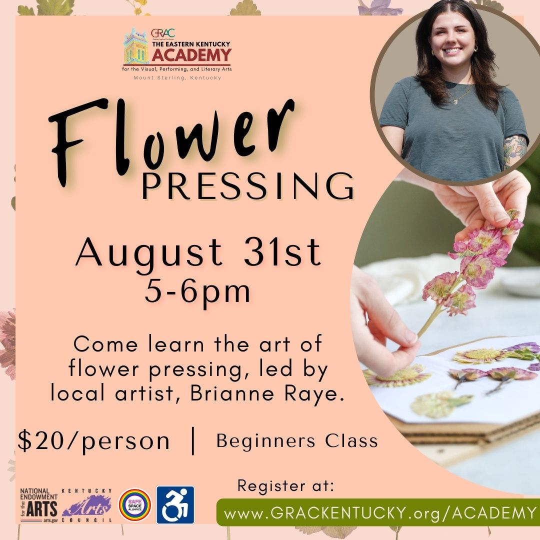 Come learn the art of flower pressing, led by local artist, Brianne Raye.