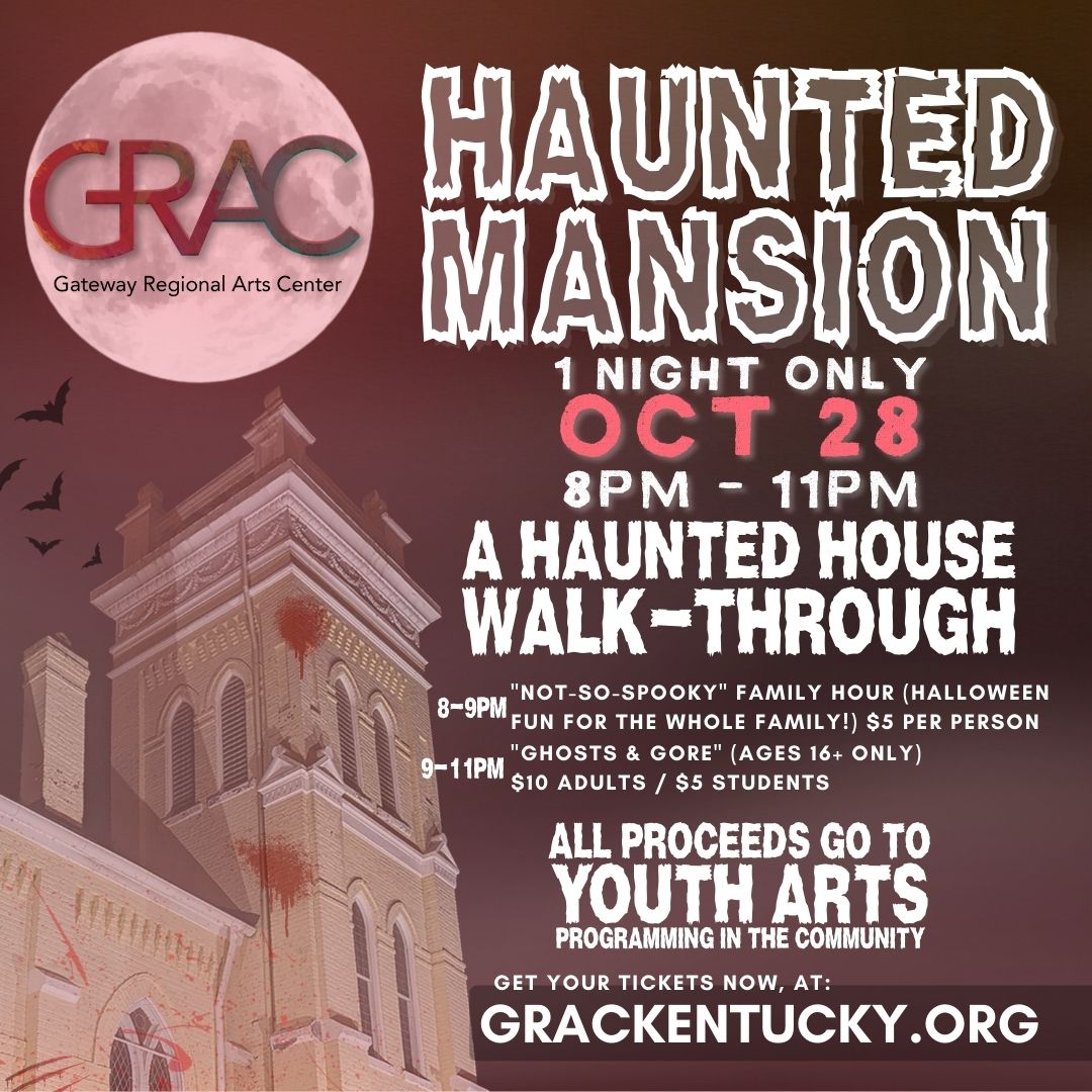 Gateway Regional Arts Center turns into a Haunted Mansion, a Haunted House Walk-through the Big Yellow Building. All proceeds go to youth arts programming in the community.