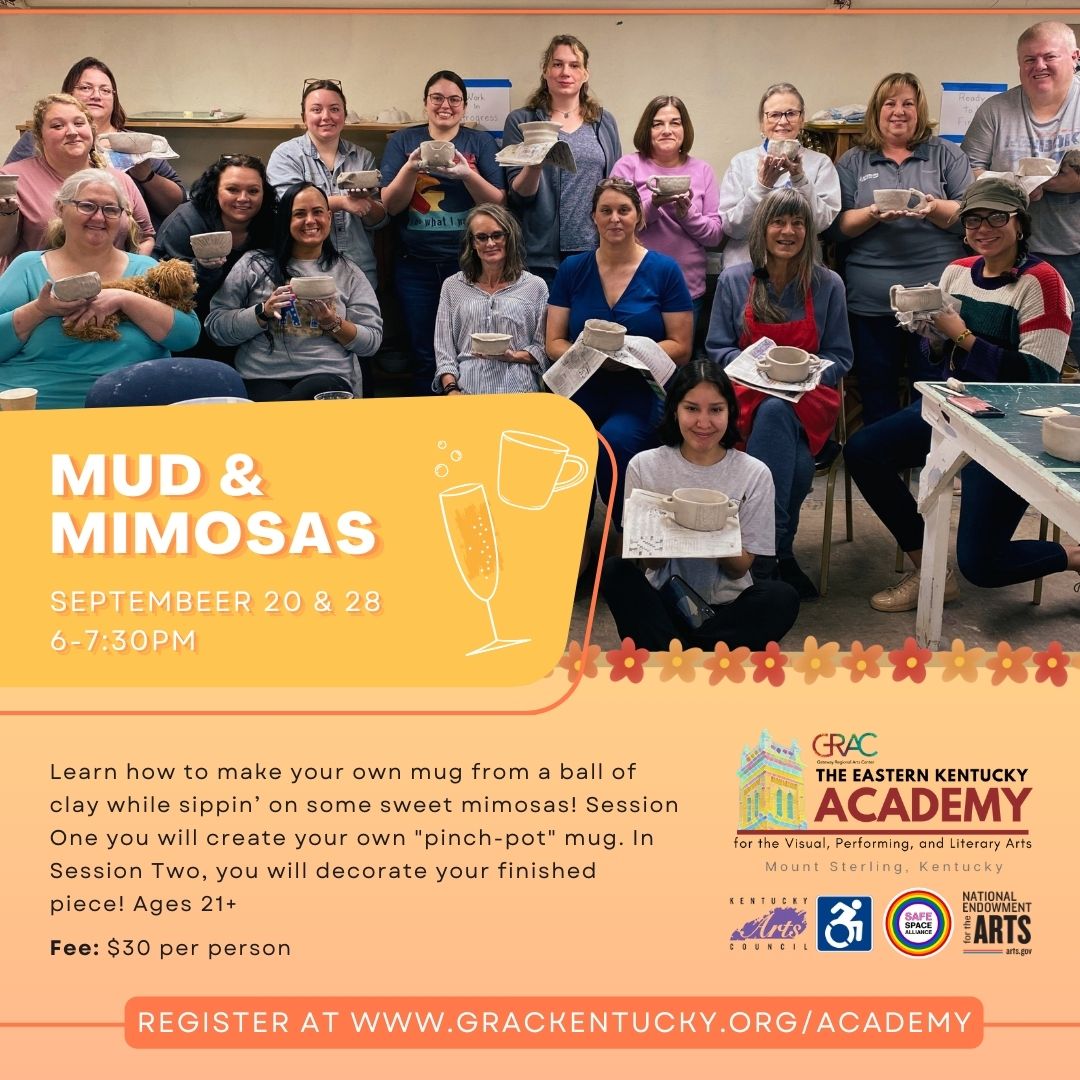 Learn how to make your own mug from a ball of clay while sippin’ on some sweet mimosas! Session One you will create your own "pinch-pot" mug. In Session Two, you will decorate your finished piece! Ages 21+. All materials included.